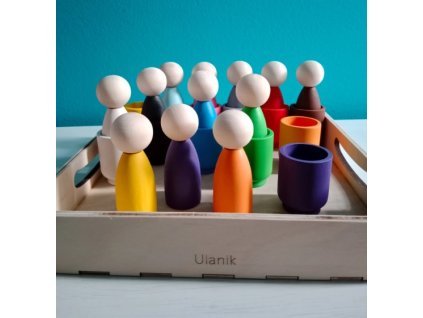 Čtveřice dřevěných hraček pro trénování barev, vkládání, nasazování, navlékání či volné hraní