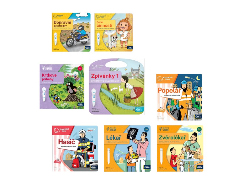 Malé knihy: Denní činnosti, Dopravní prostředky, Krtkovy příběhy, Zpívánky 1, Lékař, Hasič, Zvěrolékař, Popelář, Interaktivní mluvicí pexeso
