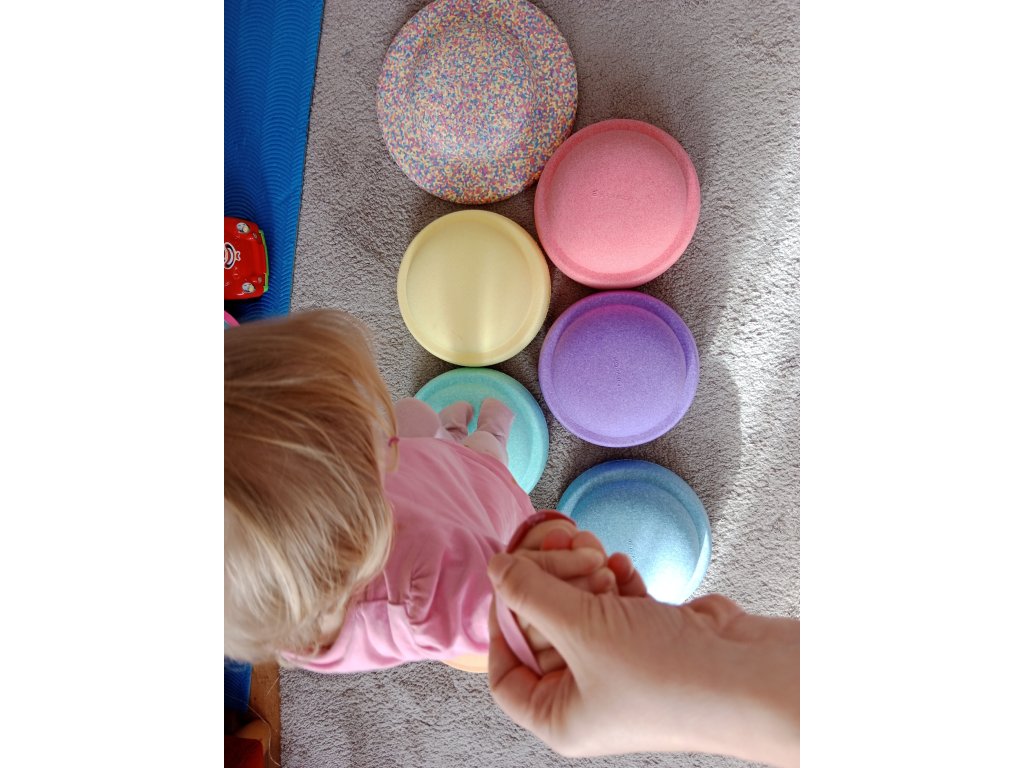Stohovatelné ultralehké "kameny" v krásném designu pomáhají trénovat balanc a skvěle masírují klenby. Hodí se dovnitř i ven, děti z nich mohou stavit věže, lézt na ně, poslouží jako stolička, sedátko, houpátko, miska nebo klobouk. Vhodné i na hraní s vodou. Jeden kámen váží pouhých 180g a unese 180 kg.
