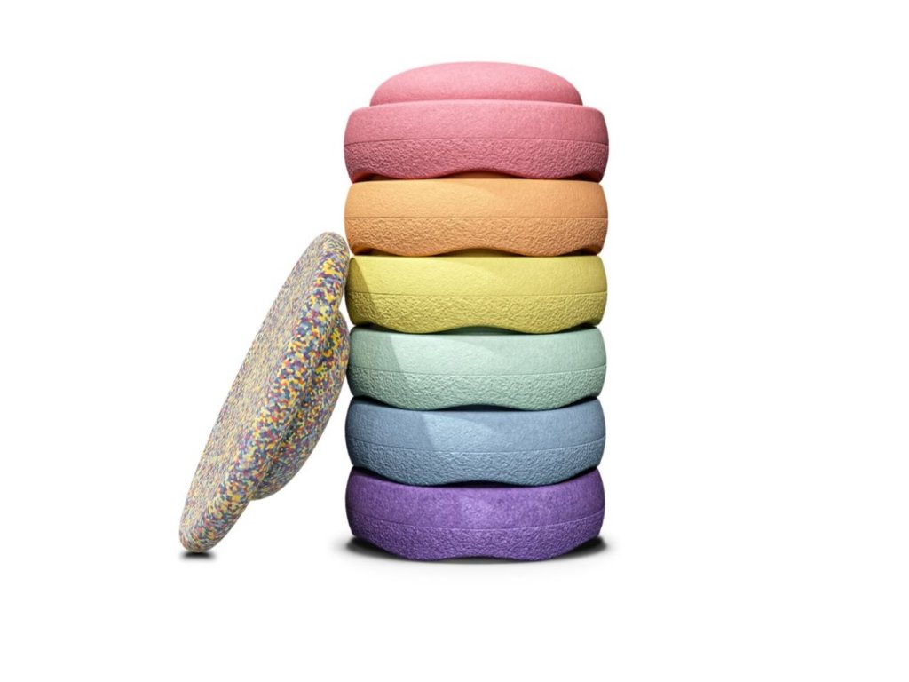 Sada 7 kusů zachycuje celé rozmanité pastelové spektrum duhy. Skládá se ze šesti primárních a sekundárních barev. Pastelová duha podporuje kreativní hru a aktivní pohyb celým tělem. Nabízí nekonečné možnosti hraní pro děti všech věkových kategorií.