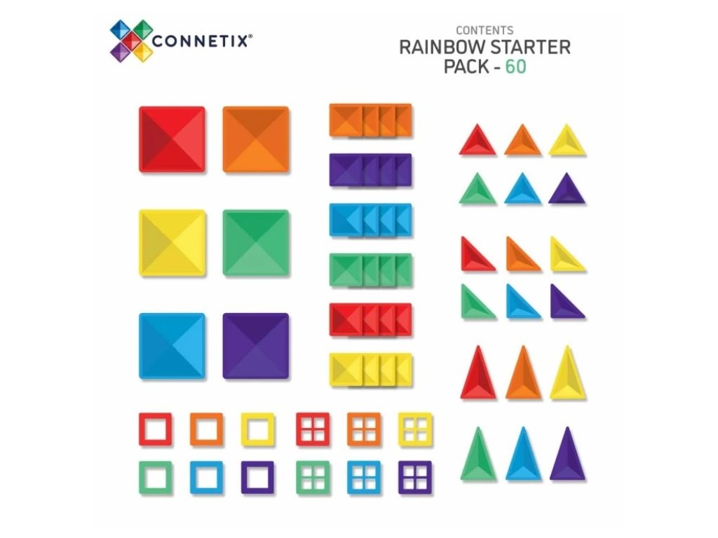 - Connetix tiles Starter pack - 60 ks magnetických dlaždic v základních tvarecha duhových barvách
