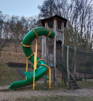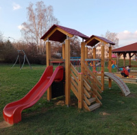 • Božíčany - dvě velká hřiště - starší dřevěné, zachovalé s funkční zip-line, hned vedle nové, opodál ještě jedno