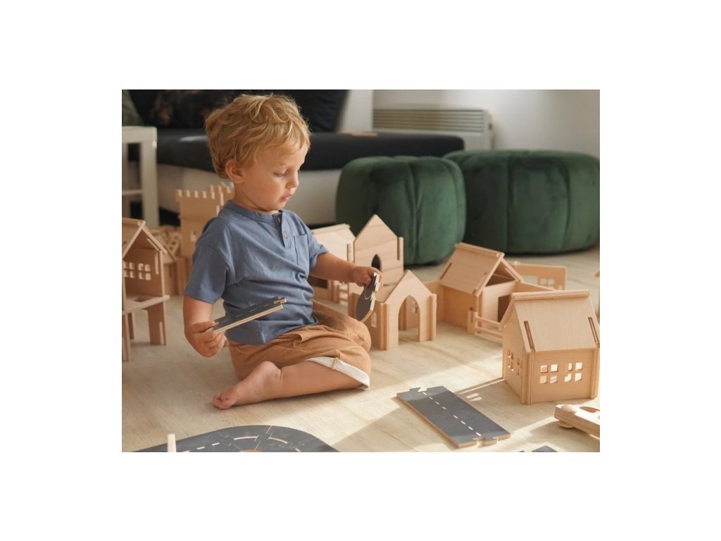 Stavebnice splňuje vysoké nároky školek a dětských center a také veškeré požadavky na hračku, která baví i rozvíjí. Dílky o tloušťce 8mm z masivní bukové překližky jsou dostatečně bytelné a vydrží i medvědí zacházení.