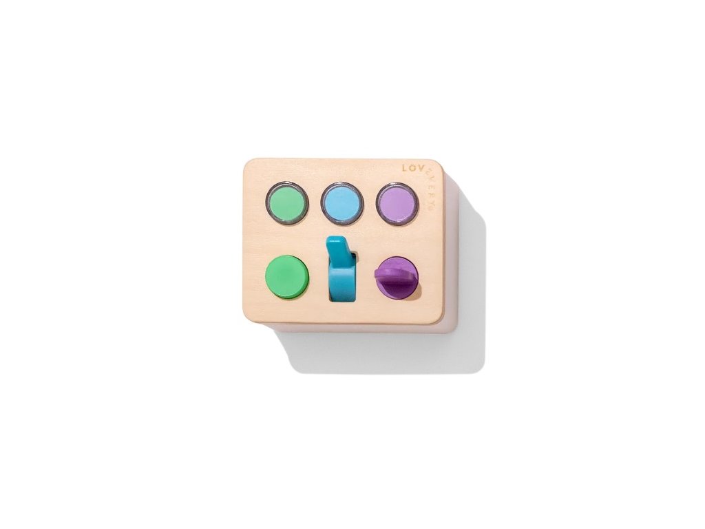 Senzorický přepínač: procvičte si tlačení, překlápění a otáčení, abyste prozkoumali příčinu a následek a zábavu s přepínači bez elektroniky.